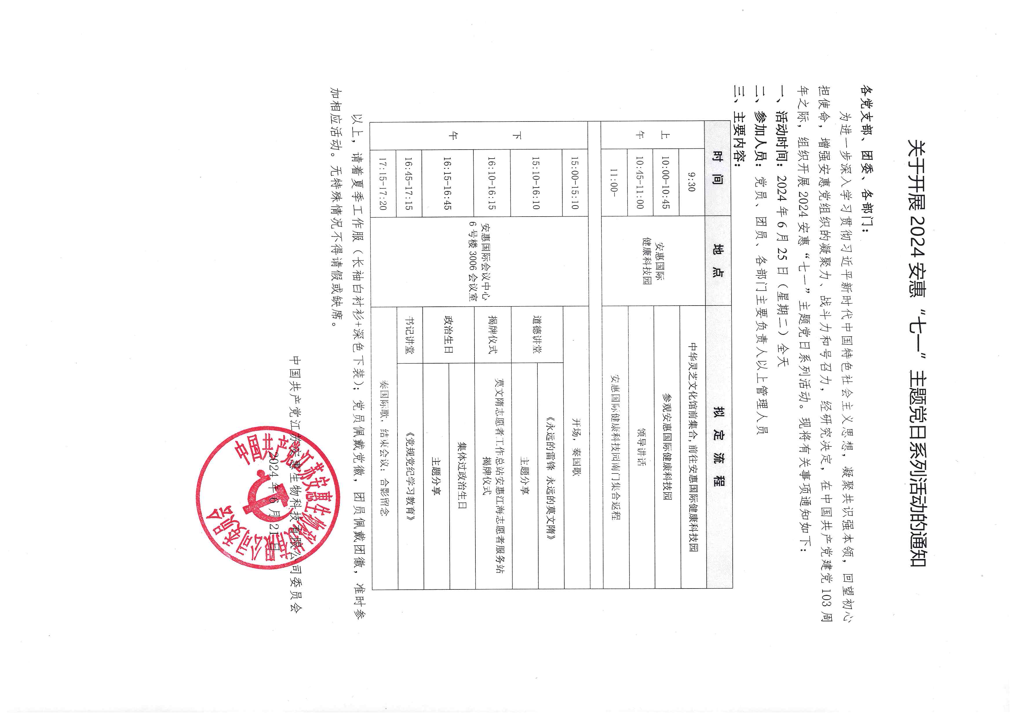 關(guān)于開展2024安惠“七一”主題黨日系列活動(dòng)的通知